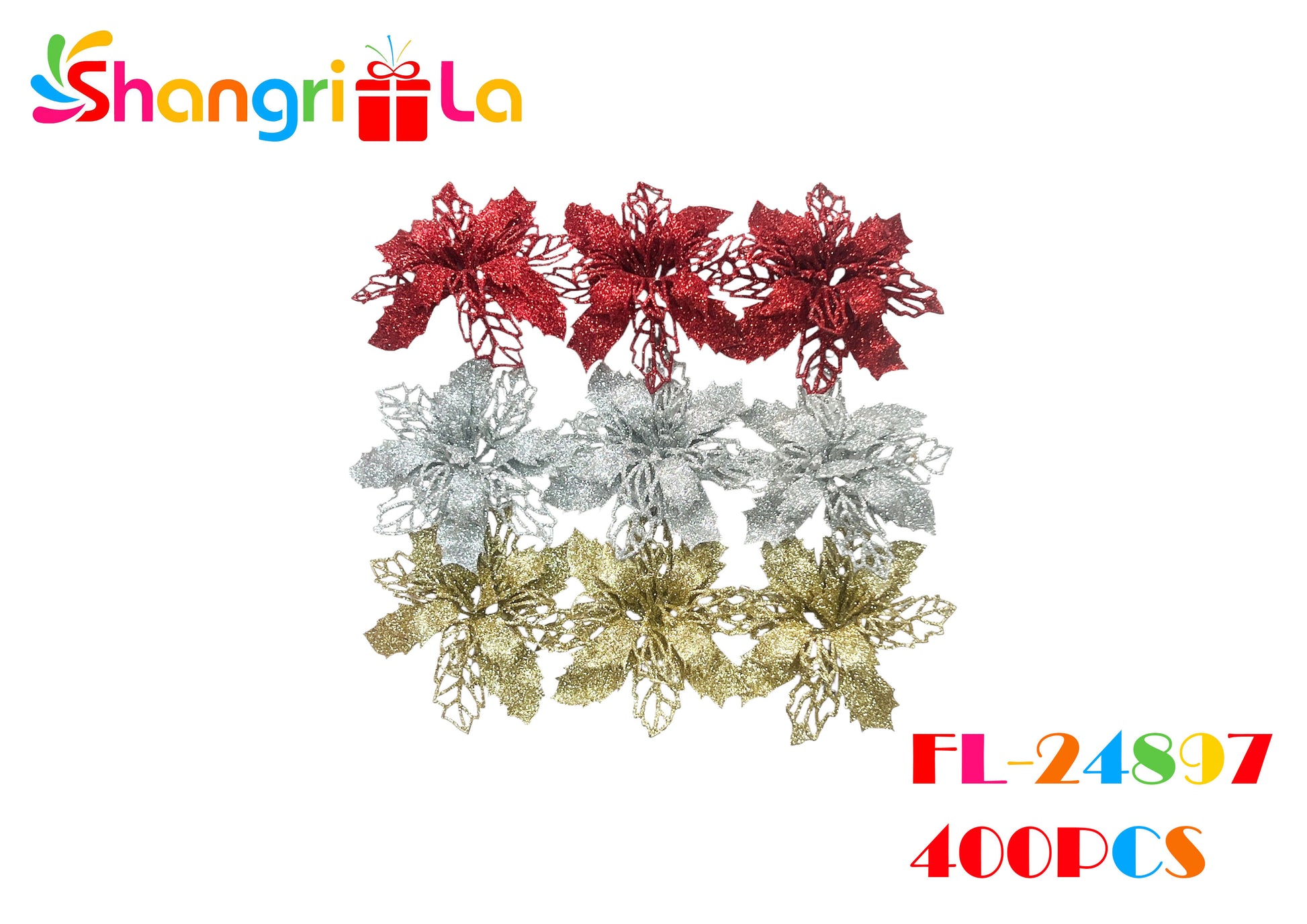 PACK 3 FLORES NAVIDEÑAS CON GLITTER
